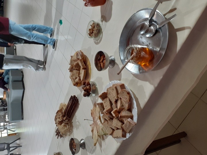 Foi uma manhã diferente e cheia de sabor! Todos os participantes puderam experimentar águas aromatizadas naturalmente, feitas com limão, laranja, hortelã e canela — uma forma simples e deliciosa de nos mantermos hidratados. O lanche incluía frutos secos, fruta fresca da época, pão de centeio, azeite e mel — alimentos típicos da Dieta Mediterrânica, conhecida pelos seus benefícios para a saúde.